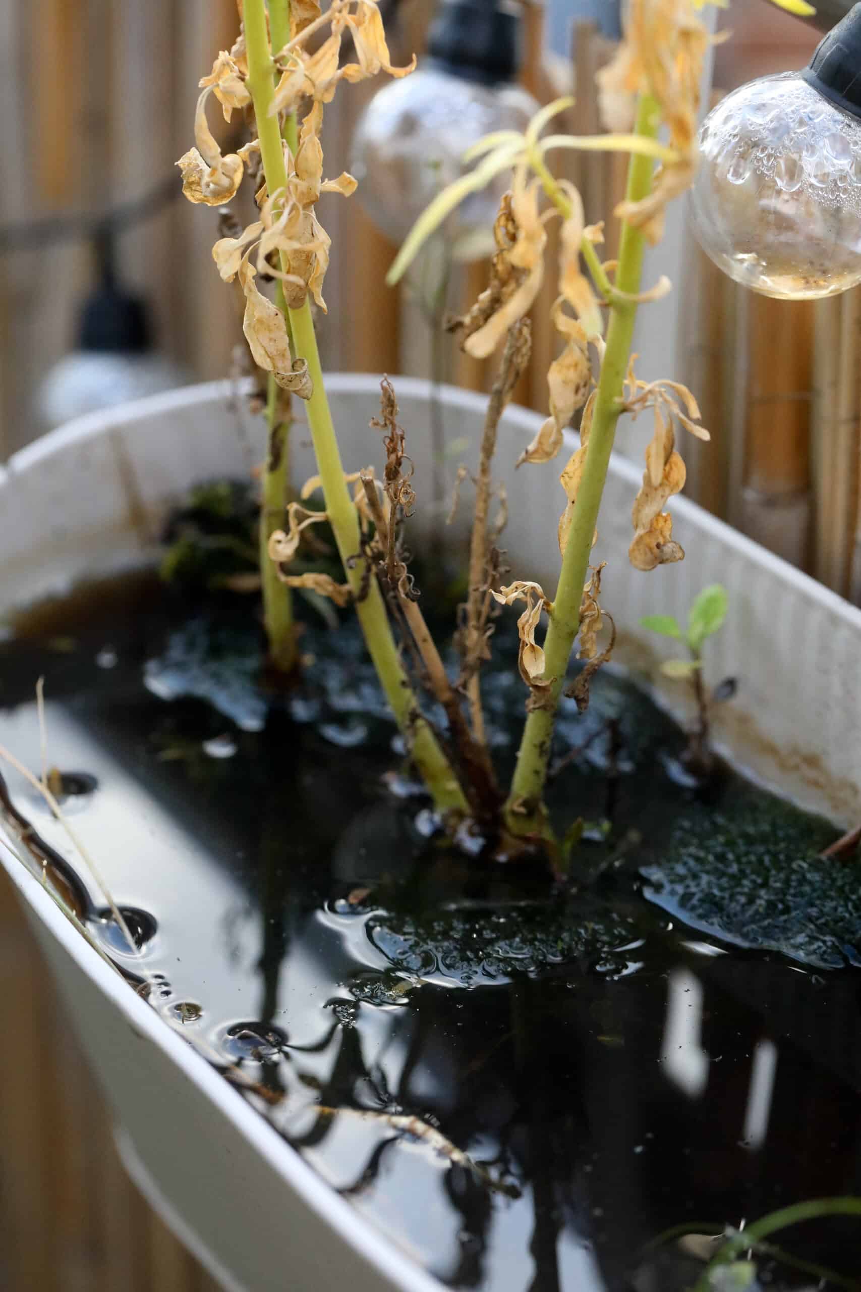 Nach Starkregen kommt es unter solchen Bedingungen im Topf schnell zu Krankheiten wie Wurzelfäule. Jetzt besteht dringender Handlungsbedarf!
