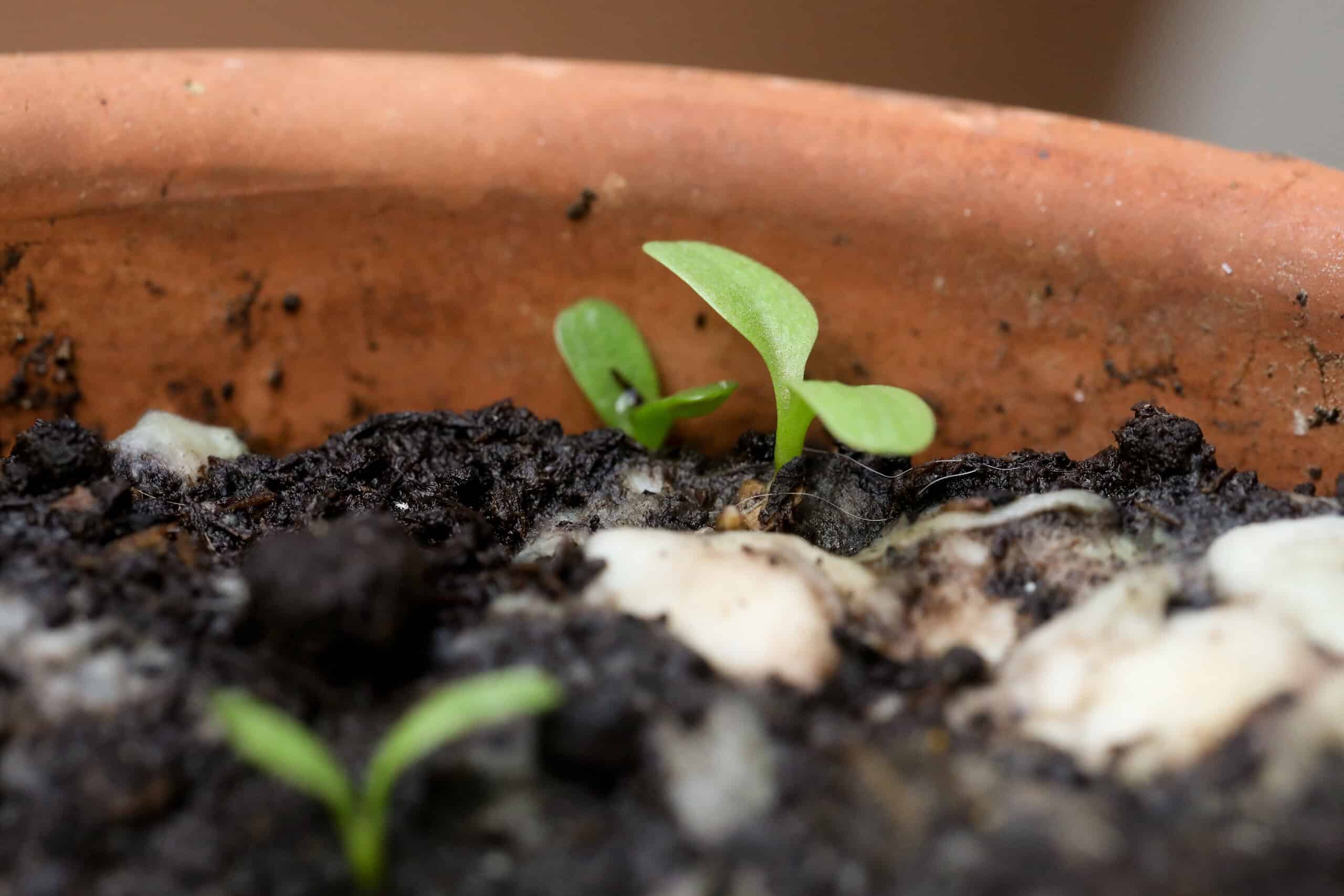 Zu Beginn solltest du Anzuchterde verwenden. Diese ist nährstoffarm und hilft jungen Pflanzen dabei, auf der Suche nach Nährstoffen, starke Wurzeln auszubilden. Unserer Erfahrung nach gewährleistet sie einen optimalen Wachstumsstart, da Anzuchterde locker, luftig und feucht ist.