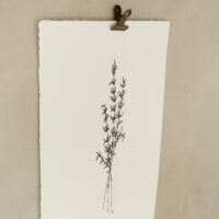 Auf dem Kunstdruck aus handgeschöpftem Papier ist eine Illustration vom Thymian mit der Bezeichnung “Thyme” auf Englisch abgebildet. Absolute Kräuterliebe!