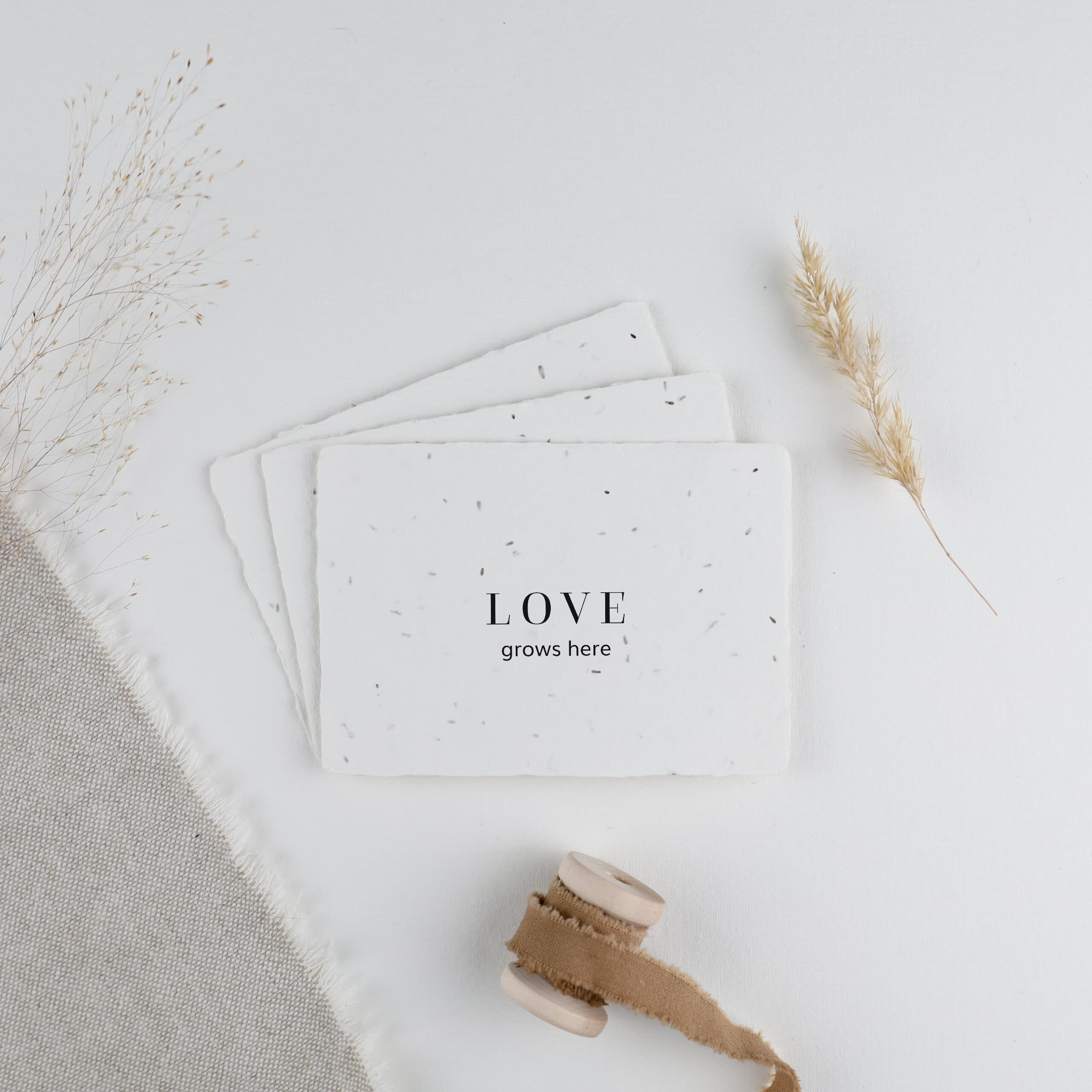 Lasst zum Zeichen eurer Liebe eure Hochzeitspapeterie aus handgeschöpftem Saatpapier wachsen. Mit viel Liebe zum Detail betten wir in unserer Manufaktur die Samen schöner Wildblumen in unser Papier ein. Als Symbol für eure Verbundenheit können eure Liebsten eure Papeterie zum Blühen bringen.