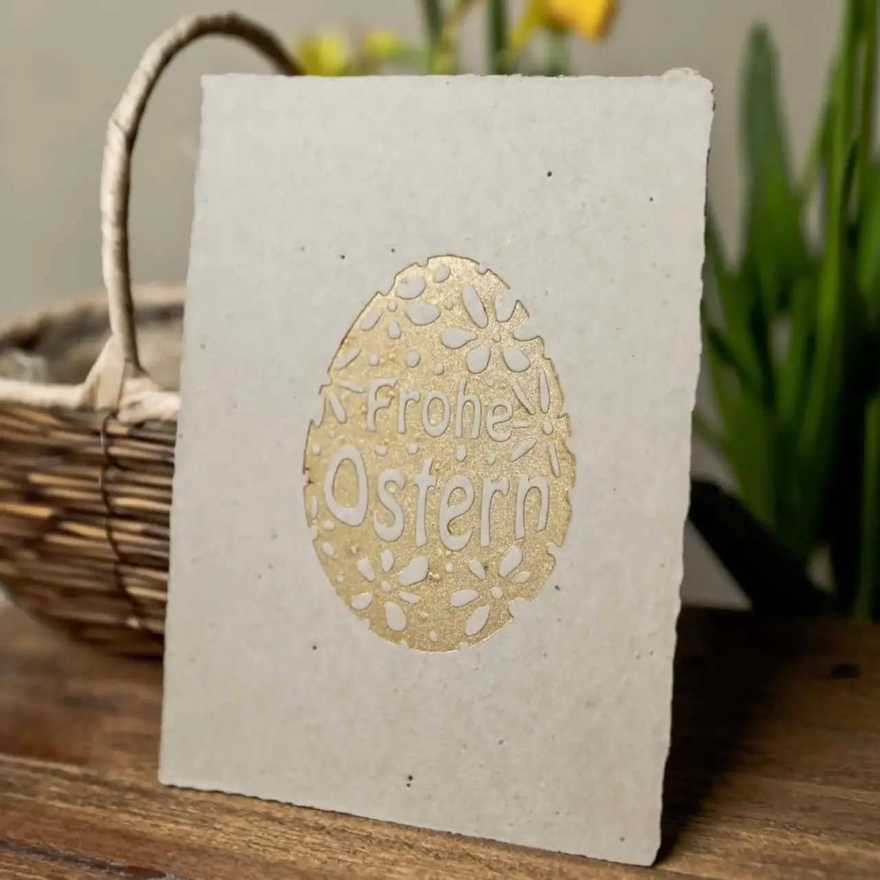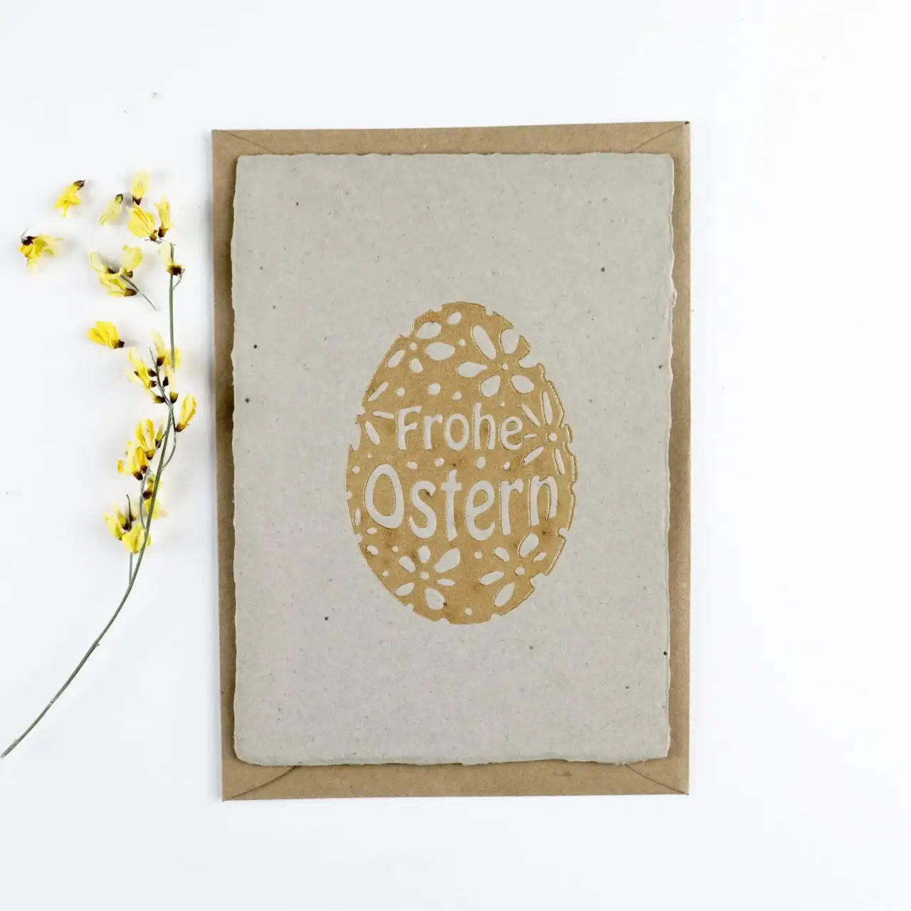 Eine ganz besondere Osterkarte aus wachsendem Papier! In das handgeschöpfte Saatpapier sind Samen eingearbeitet, die nur darauf warten als nachhaltiger Ostergruß zum Leben erweckt zu werden.