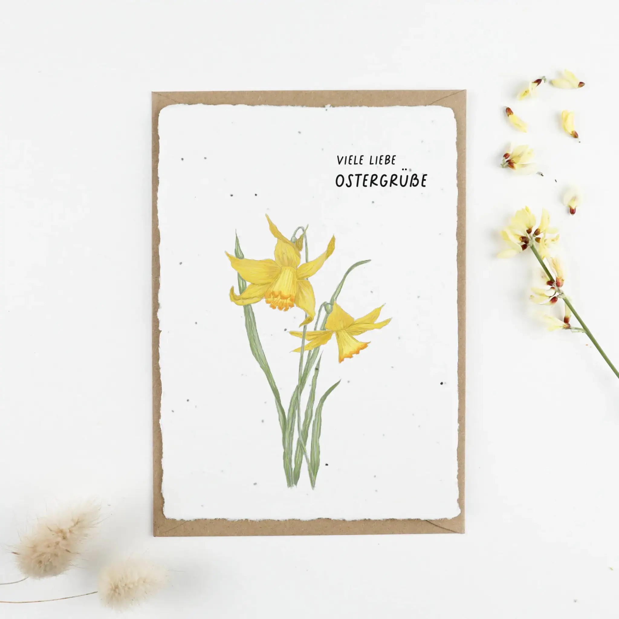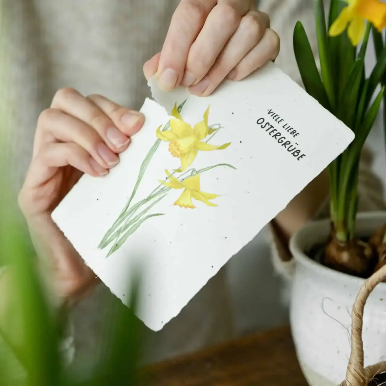 Eine ganz besondere Osterkarte aus wachsendem Papier! In das handgeschöpfte Saatpapier sind Samen eingearbeitet, die nur darauf warten als nachhaltiger Ostergruß zum Leben erweckt zu werden.