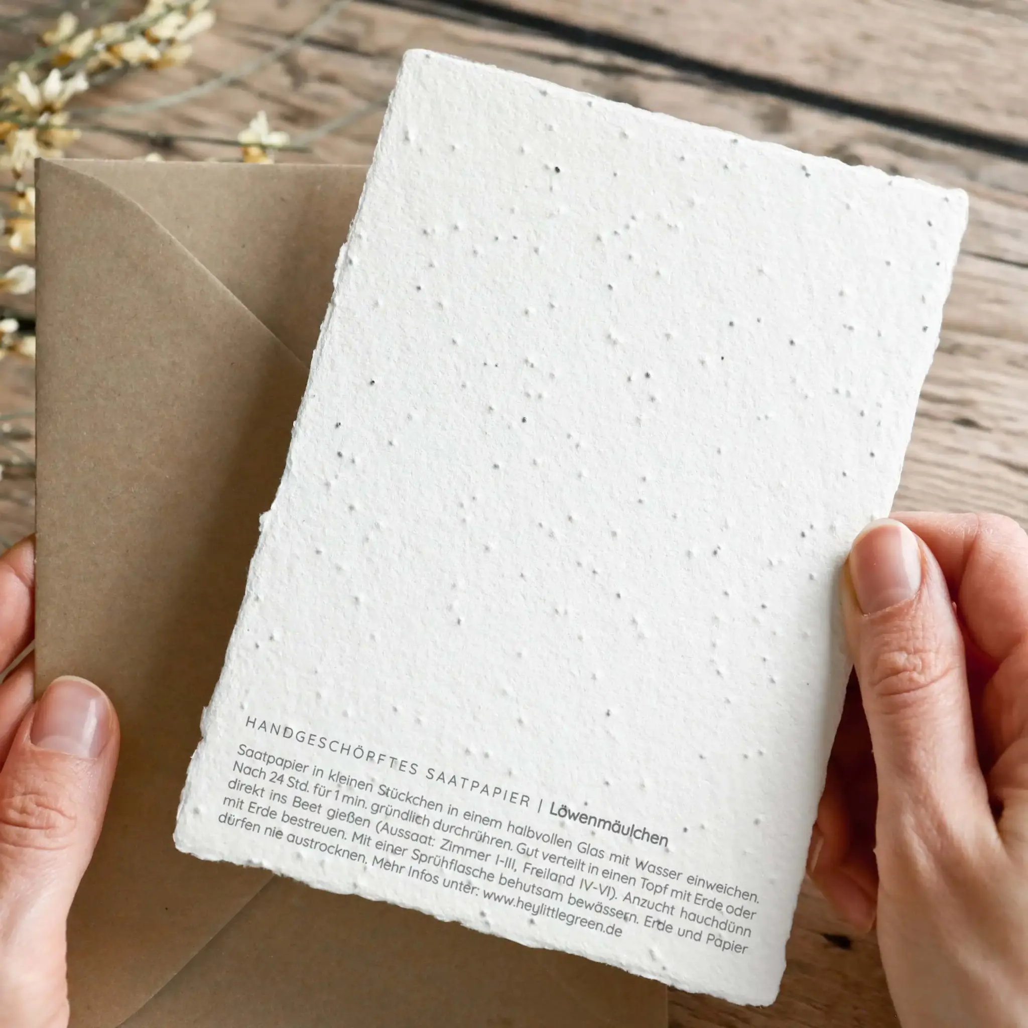 Im Herzen unserer Werkstatt, wo Handarbeit auf Naturverbundenheit trifft, entstehen mit unserem handgeschöpften Saatpapier kleine Wunder der Natur. Jede Karte ist ein handgemachtes Einzelstück mit Ecken und Kanten, deren Details Schönheit widerspiegeln. Leichte Abweichungen in Druck, Größe, Strukturierung, Farbe, Papierstärke und Verteilung des Saatguts erzählen die Geschichte unserer Produktion in echter Handarbeit. Mit einem achtsamen Blick erkennst du, dass es gerade diese Feinheiten sind, die jedes Produkt zu etwas ganz Besonderem und einem wahren Einzelstück machen. Wir glauben an Hingabe, die man fühlen kann und Produkte mit Charakter.