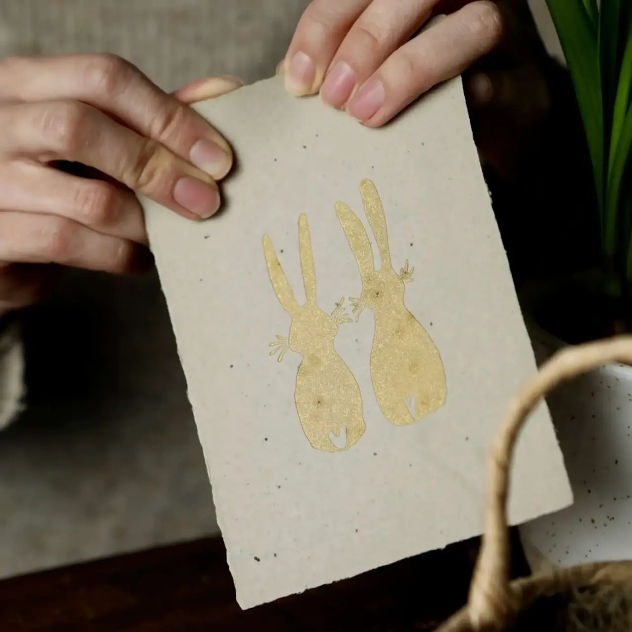 Eine ganz besondere Osterkarte aus wachsendem Papier! In das handgeschöpfte Saatpapier sind Samen eingearbeitet, die nur darauf warten als nachhaltiger Ostergruß zum Leben erweckt zu werden.
