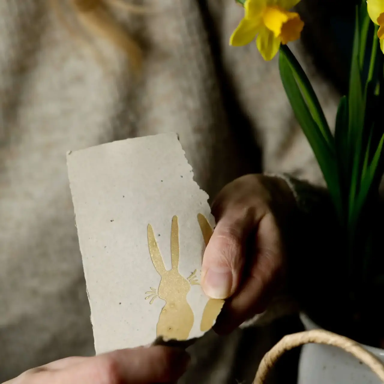 Mit viel Liebe zum Detail bringen wir klassische Ostermotive auf unser handgeschöpftes Saatpapier: Erst die Skizze, dann die Zeichnung, schließlich noch die Farbtupfer. In Kombination mit unserem Papierhandwerk, machen wir so jede Osterkarte zu einem kleinen Kunstwerk, das verschenkt werden und den Frühling willkommen heißen möchte.